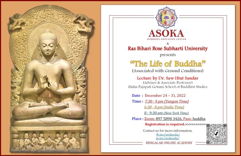 "The Life of Buddha Course ( Dec-24-31) will be conducted mainly in Burmese. Dec-24-2022 တွင် ဖွင့်..."